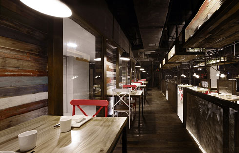 上海辦公室裝修公司案例:本案展現生活充滿熱情這一設計理念。將餐廳設計成為能給客人提供一種味覺與視覺相結合的美食探險的空間。